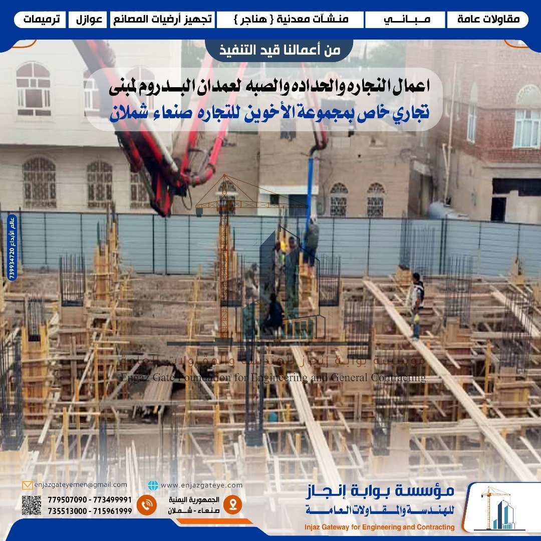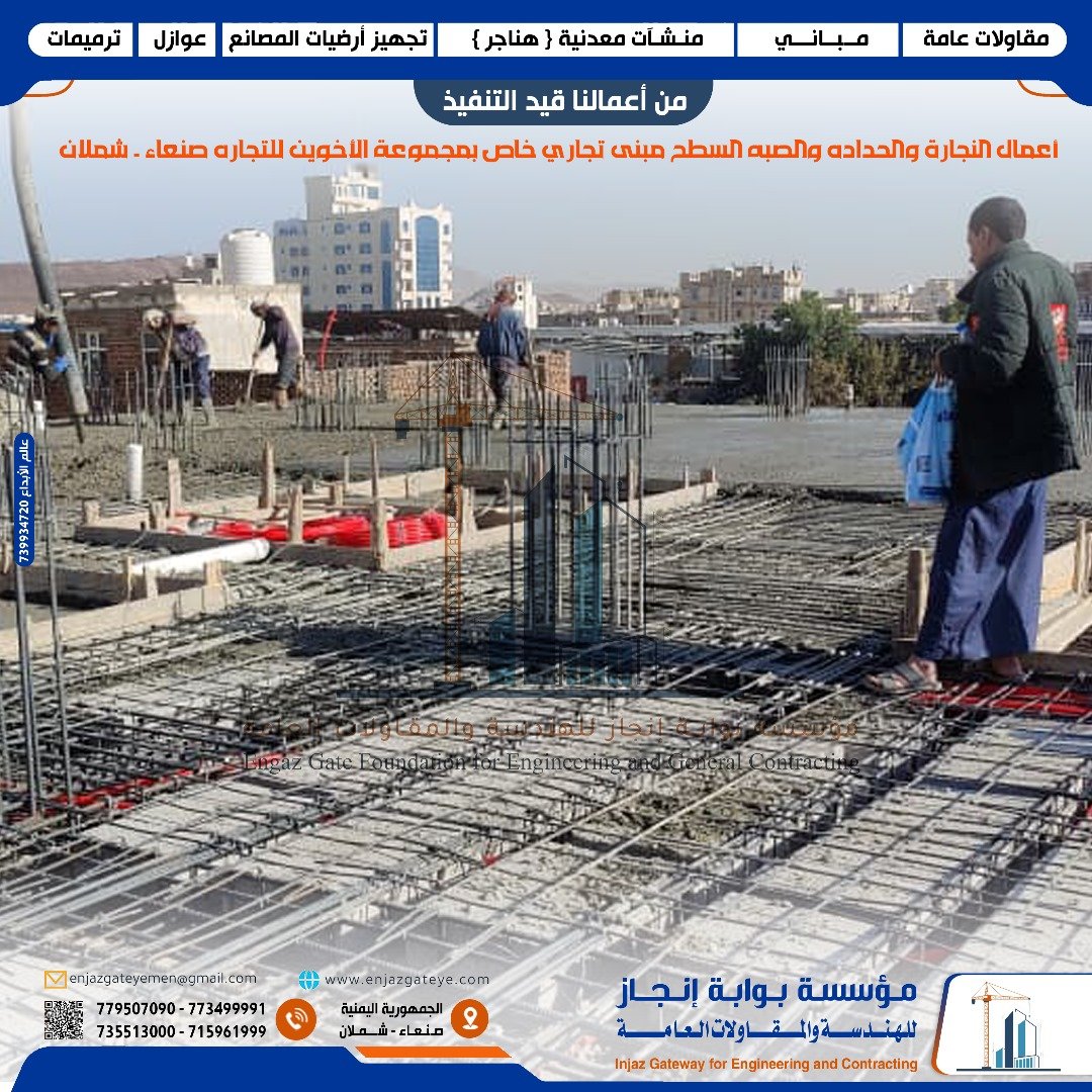 نحن شركة مؤسسة بوابة انجاز من افضل الشركات اليمنية المتخصصة في مجال توزين وتقسيم وصبة أرضيات المصانع والمخازن في اليمن مع الضمان