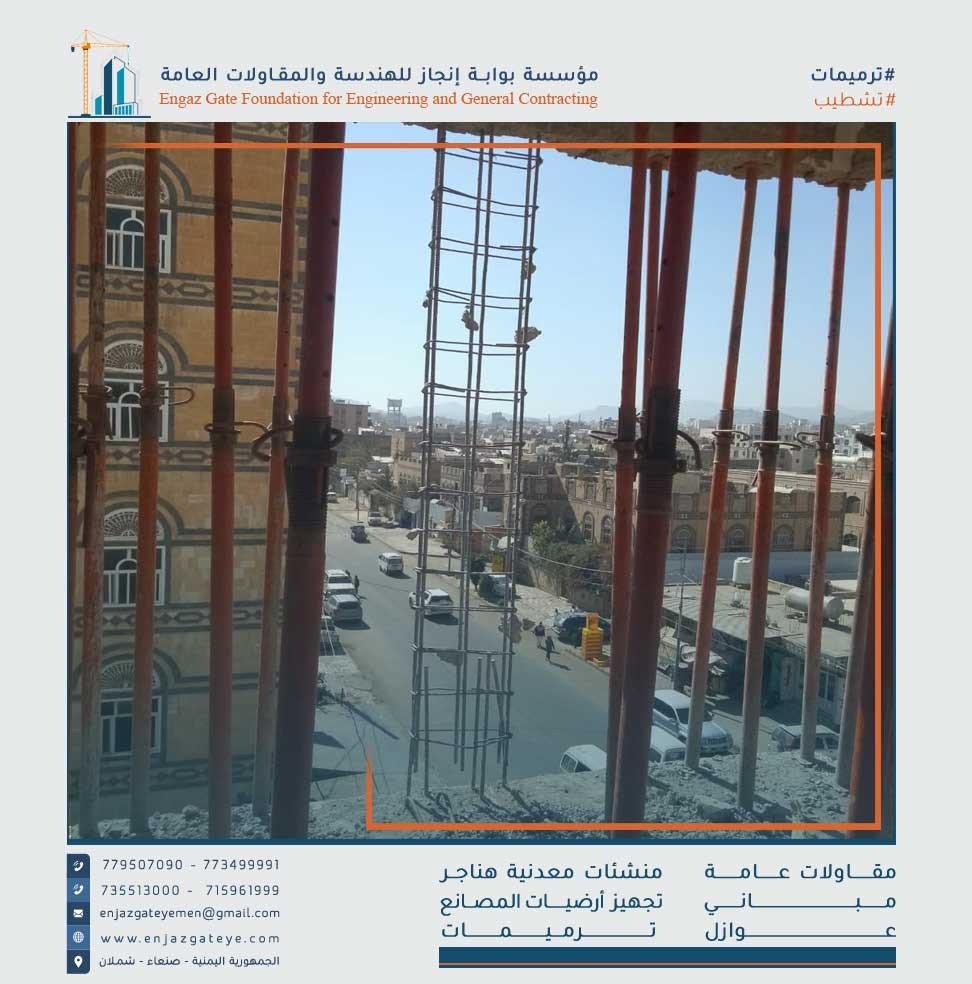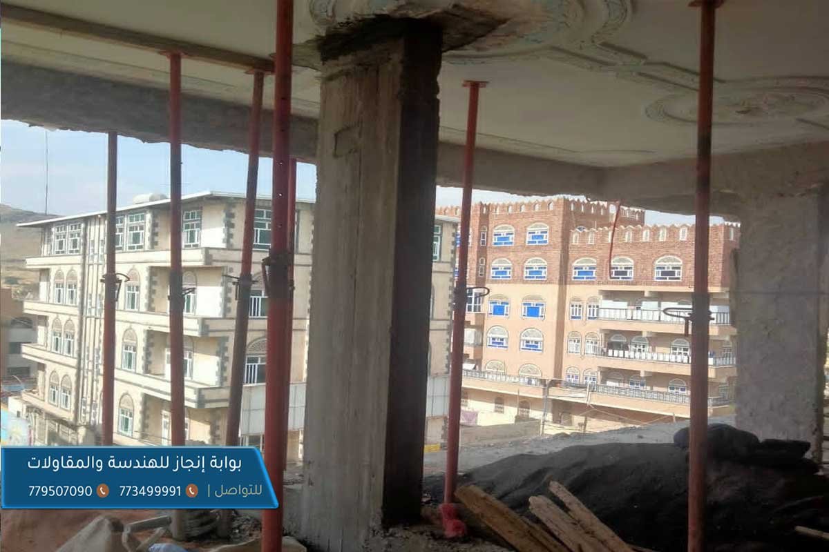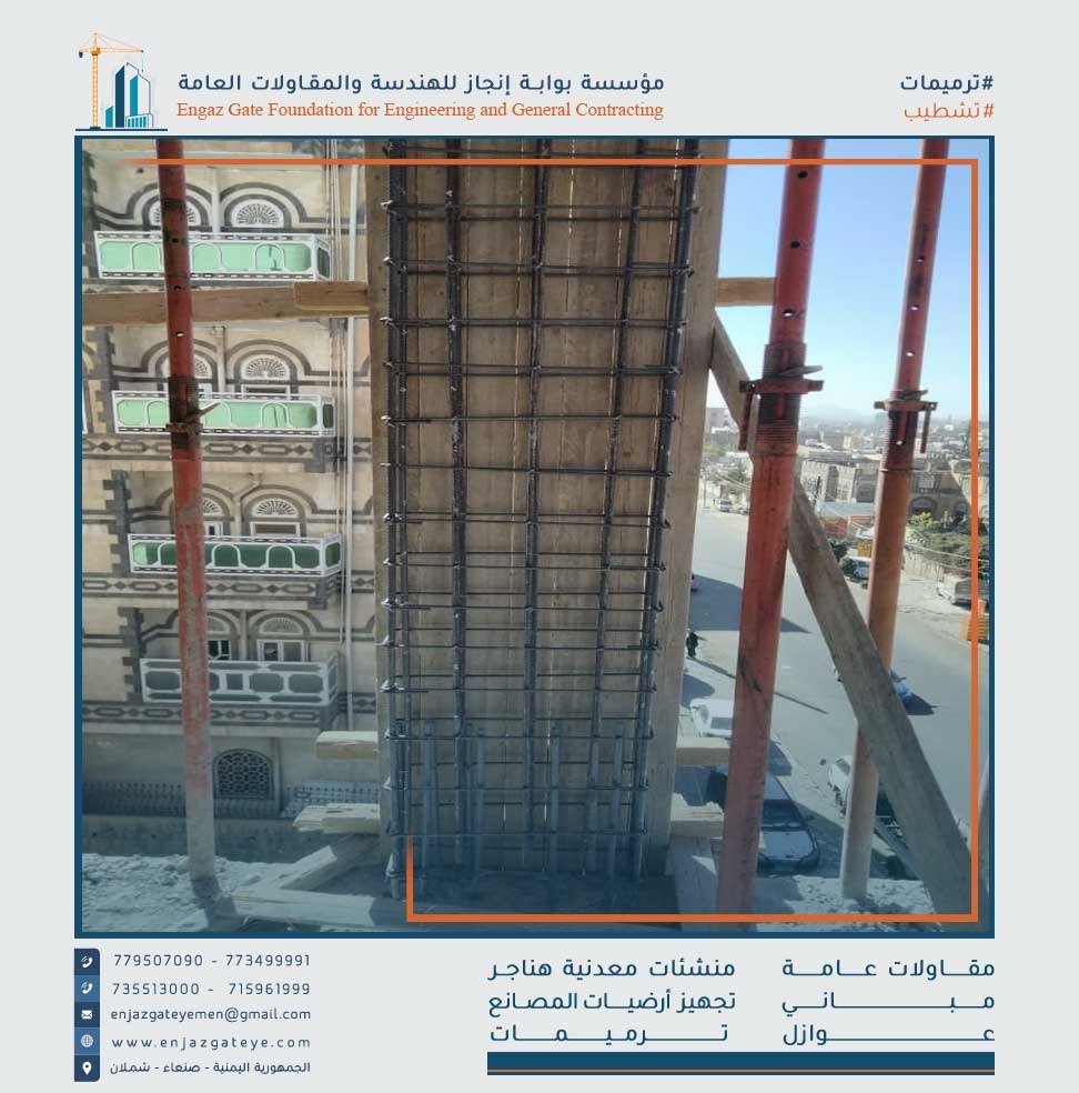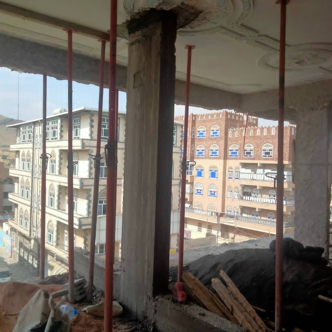 من اعمالنا في قسم الترميمات للمباني القديمة والمتأثرة بنتائج الحروب تم معالجة العمدان المتهالكة في المباني القائمة حيث تم تكسيرالعمدان واعاده تشيدهم من جديد بطرق هندسية مدروسة بدقة عالية مع مراعاة تدعيم السطوح اثناء الترميم مع استخدام احدث المواد لزراعة الحديد ومواد الربط بين الخرسانة القديم والجديد